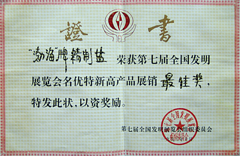 第七届全国发明展览会名优产品最佳奖