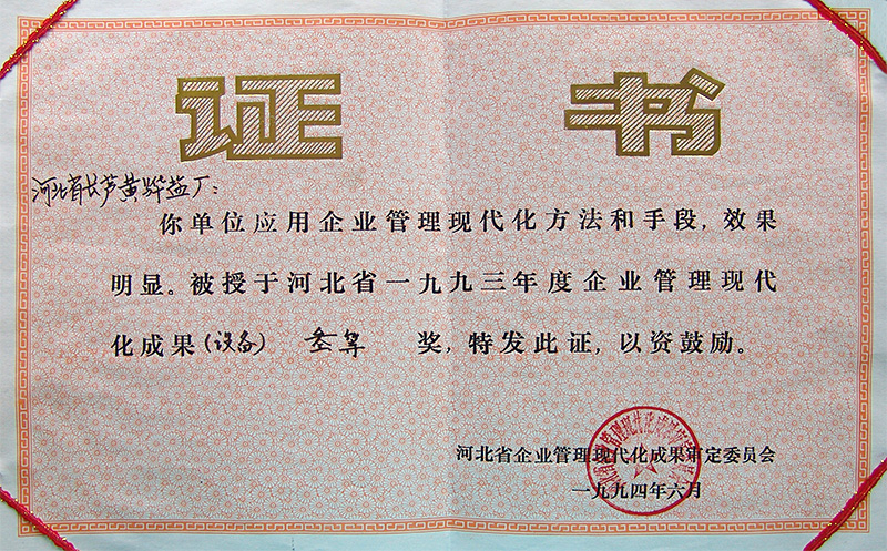 河北省企业管理现代化成果三等奖