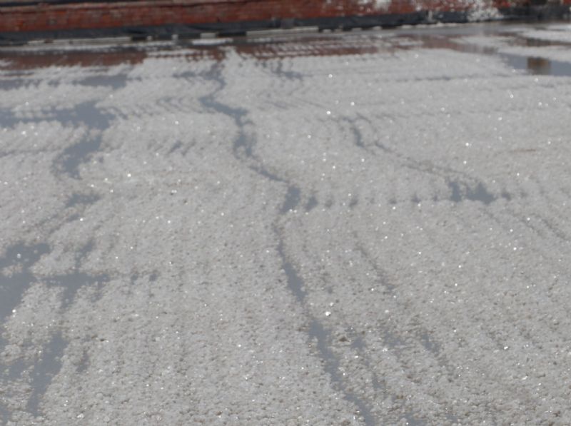 听 是谁 踩着露珠与晨曦追时间看 是那些制盐人 用健壮的脚 日复一日 开垦出丰收的路 而又是 那些用盐粒堆砌的晨曦与黄昏 变成蒸发池熬煮的年轮 盐耙子年复一年 搁浅在黝黑的皱纹里 粗犷的指纹抚平波纹 结成霜白的痂...