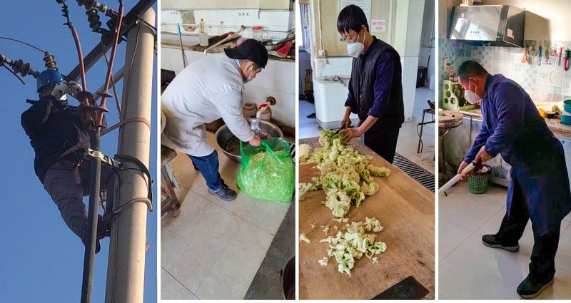 在后勤处有这样一群人,他们不辞辛劳,积极响应动员,始终坚守奋战在工作第一线。他们在困难面前,舍小家为大家。伙房班组的吴占峰、张汉升、于宝和三位同志,在同事相继出现感染后,积极挑起重担,以单位为家,吃住在单位,不怕苦不怕累,坚持为职工们提供饭菜。由于采购原材料不方便,几人便绞尽脑汁地用有限的食材搭配出不一样的饭菜,既要保证职工们吃得饱,又要保证营养好。几人每天要同时准备70余人的饭菜,经常忙得脚不沾地,每天早上刚起床就得准备发面、洗菜、做饭,饭做好了,等大家领走饭盒,三人才能闲下来吃饭。完事后又要清理卫生,清洁操作间,每天都是忙得连轴转。即便是这样,他们也不叫苦、不叫累,任劳任怨地坚持着。后勤处供水班组、制水班组的职工同样也在坚守着岗位。正是由于他们的无私付出,后勤处在疫情严峻的情况下,保证了正常的供餐、供水需要。