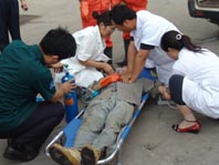 为增强应对突发事件能力,保证奥运会期间的安全生产,按照河北省、沧州市安委会和中盐总公司要求,6月25日,公司在溴素二厂举行了危险化学品应急演练。本次演练特别邀请了黄骅市消防大队、黄骅市华西医院、长芦派出所的消防官兵、急救分队和专业人员进行现场指导并参与演习,公司溴素一厂、溴素二厂、溴素三厂20余名应急救援队员参加了演练。