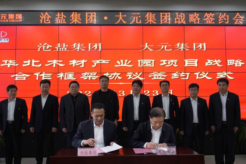 3月23日,公司党委书记、董事长刘建军带队前往大元集团,在与大元集团党委书记、董事局主席李建国洽谈后,双方签署了《华北进口木材产业园战略合作协议》。公司领导张立庄、李金营、狄彬及相关部门负责人出席签约仪式。