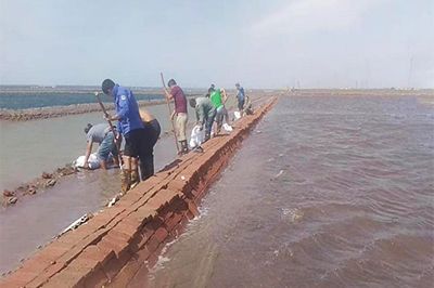 为了确保安全渡过此次天气过程,长芦公司领导与防汛办公室人员深入到各单元、重点部位、关键闸涵,对片淡、塑苫防风、排淡情况进行现场检查。各单元也加强24小时巡查,防止池埝、护滩埝发生险情,保障排淡及时正常进行。