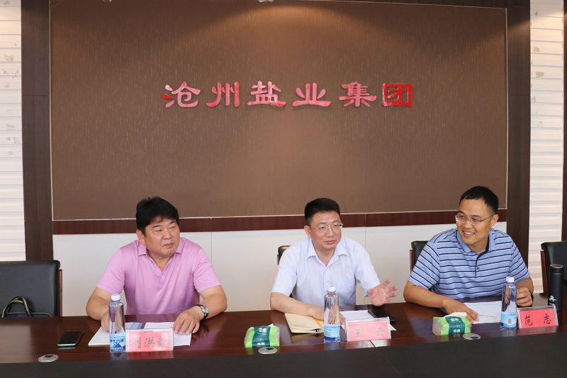 刘建军对王云一行表示欢迎,并简要介绍了沧盐集团近年的发展情况。他表示,中盐与沧盐地缘相近,人缘相亲。沧盐曾有三十多年隶属中盐总公司,中盐作为上级领导多年来一直关注和支持着沧盐的发展,双方有着深厚的感情和密切的业务联系,彼此信任有加,合作基础牢固。希望双方能够发挥各自优势资源,推动合作建设海盐食盐加工基地项目,实现共赢。