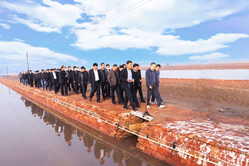 上午,与会人员集中乘车到长芦公司储卤系统改造工程现场、26队扒盐现场、溴素扩能升级改造项目现场、建筑工程公司施工工地现场进行了现场观摩,并听取了所在单位负责人的现场介绍。党委书记、董事长刘建军对以上公司的工作给予充分肯定,并提出了指导性意见。