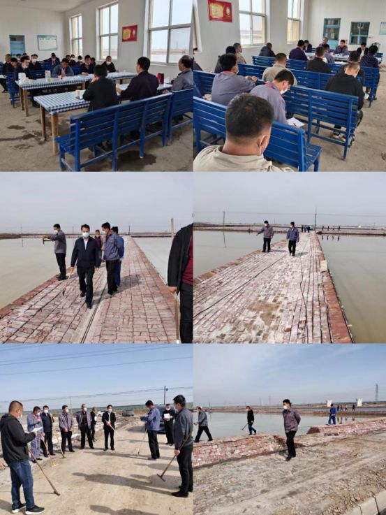 此次联查的重点是扒盐操作、扒盐现场安全管理、结晶管理、文明生产、设备正产运转情况、安全基础档案等。检查结束后召开了现场会议,各制盐工区负责人根据检查情况,对照各自的工作,认真分析自身生产、安全工作中的长处和存在的不足,分别进行了汇报发言。会议对检查中存在的问题以及下步工作进行了详细布置。宋建林对疫情期间以及近期的安全、生产工作取得的成绩给予了充分肯定,他要求各级管理人员要牢固树立先安全后生产、提质量保市场的思想,坚持目标导向,问题导向,结果导向,坚定信念,迎难而上,坚决落实“五步工作法”,加强管理,严细操作,压实责任,保质保量地完成好春扒工作。