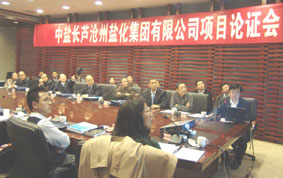 论证会由中盐总公司、中盐制盐工程技术研究院、国家海洋局海水淡化与综合利用研究所、中国石油和化学工业规划院、天津科技大学、天津长芦汉沽盐场、天津海晶集团公司和中盐红四方股份有限公司等相关行业及企业的9名专家组成专家组,并推选中盐制盐工程技术研究院院长、教授级高工李树生为专家组组长;同时邀请了河北省发改委、沧州市发改委、沧州渤海新区管委会、沧州渤海新区化工产业园区等地方政府领导,与发展规划有关联的沧东国华电厂、华润电厂、沧州水利设计院、华北电力设计院等单位的领导参加了论证会。中盐总公司和我公司相关领导出席了会议。