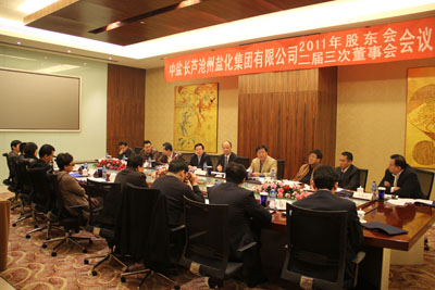 3月5日,公司召开了2011年度股东会暨第二届董事会第三次会议,中盐总公司总经理助理胡红江,沧州市国资委主任、党委书记李任放,沧州市国资委副主任、党委副书记孙寿常,沧州市建设投资公司总经理邓文忠及董事、监事共18人参加了会议。