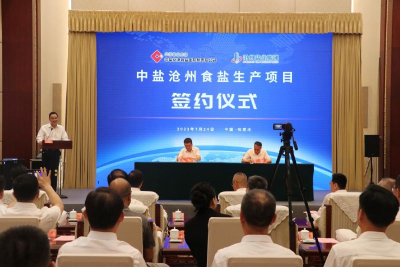 河北省工信厅、沧州市政府、渤海新区黄骅市政府相关领导,中盐京津冀副总经理张朝晖,公司党委副书记王化池,副总经理文兴峰、于剑和相关人员参加了签约仪式。