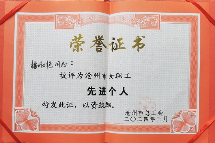 获奖职工分别接受了沧州市总工会和黄骅市妇联的表彰。