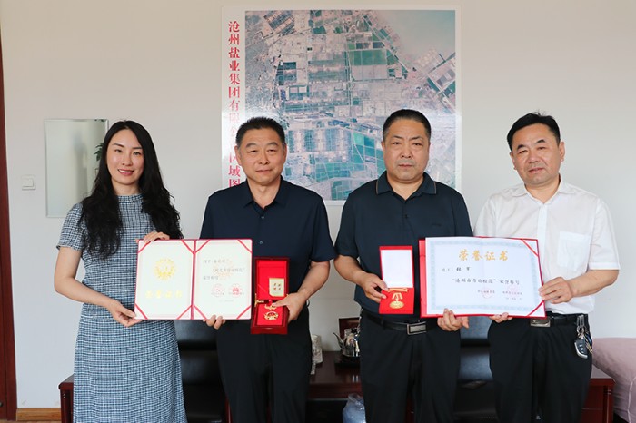 近日,集团公司安全环保部职工崔树明、人力资源部职工张军分别荣获河北省、沧州市劳动模范称号。5月21日,党委委员、工会主席崔国芳向该2人发放了劳模证书。