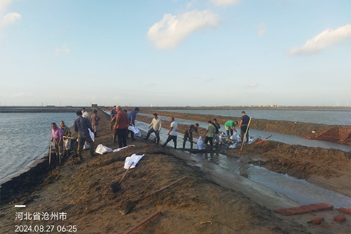长芦公司各级生产管理人员,高度重视此次天气过程,根据气象部门天气预警,科学布置应对措施。8月24日,各生产单元提前完成保卤、拉塑、腾倒空头圈,为应对此次恶劣天气做好充足准备。8月25日,长芦公司生产一线全体职工全部在岗,公司领导带领生产质量部相关人员深入各个制盐单元,对防汛物资储备、保卤、塑苫拉放、边角苫盖、防风以及主排淡道和防潮设施等各项工作进行检查,对存在的问题现场督办立即整改。
