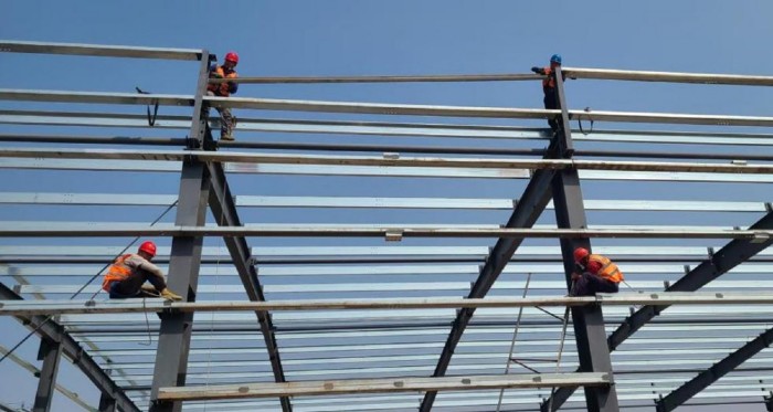 同时,施工科合理调配资源,根据作业高度及高空人员体力消耗,采用“两班倒”作业模式,在保障人员休息的前提下延长有效作业时间。截至9月26日,钢结构高空作业工程全部完成,较原计划提前3天,为后续屋面施工、设备安装等工序创造了有利条件。