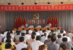 大会在雄壮的《国歌》声中开始。党委委员、副总经理王化池宣读了《中共中盐长芦沧州盐化集团有限公司委员会关于表彰2012年度先进集体和优秀个人的决定 》。在工作人员宣读完受表彰的先进集体和优秀个人名单后,大会举行了隆重的颁奖仪式,为2012年度涌现出的先进党总支(直属支部),党风廉政建设先进党总支、支部颁发了奖牌。高志勇、刘占伟分别代表先进集体、优秀个人做了表态发言。