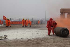 下午2时30分,应急救援演练正式开始。在模拟演练现场,演练人员秩序井然,按照演练步骤圆满完成各项演练科目。演练过程中,现场解说员也随机为观摩人员进行了细致的讲解,宣传了应急救援注意事项及相关应急常识,凸显了演练实用化效果。现场演练结束后,举办了应急演练技能比武活动,各参赛人员抢时间,比速度,按照要求正确穿戴空气呼吸机和全封闭防化服,充分体现了抢险突击队员的整体素质。整个演练过程历时1小时30分钟,既检验了处置突发事故的应急能力,也发现了演练实施过程中出现的问题,为今后的实战积累了宝贵的经验。