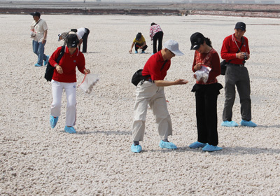 考察团参观了公司的海盐采扒现场、银山碘盐公司以及中国盐业博物馆。在海盐采扒现场,老干部们进入结晶池,饶有兴致地体验了亲手采拾原盐的乐趣。通过参观,老干部们对公司近几年所取得的发展成绩给予了高度评价,并对中国盐业总公司顺利推进“两步走”发展战略,实现做强做优目标坚定了信心。