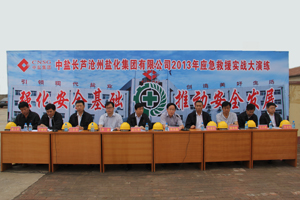 为加强对安全生产事故的防范,提高应对突发安全生产事故的处置能力,6月18日,公司在溴素一厂举行应急救援实战大演练。公司安委会成员、抢险突击队员及各单位党政负责人、安全生产负责同志、安全员和各职能部室负责人等150多人现场进行了观摩演练。黄骅市副市长贾兆德、黄骅市安监局局长孙进也应邀进行了现场观摩。