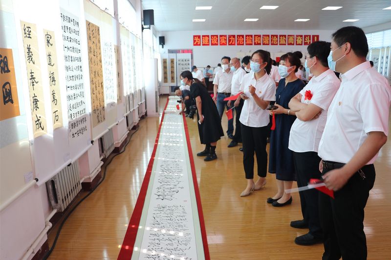 刘建军表示,今天以书画展的方式,歌颂党的丰功伟绩,倾吐党的母亲恩情,传承红色基因,激发创业热情,不断丰富发展沧盐特色的企业文化,进一步引领方向、净化心灵,激发斗志,凝聚力量,影响和带动全体干部职工一心向党、知党恩、听党话、跟党走,在各自的岗位上再创佳绩、再立新功,必将对企业文化建设产生推波助澜、事半功倍的效果。