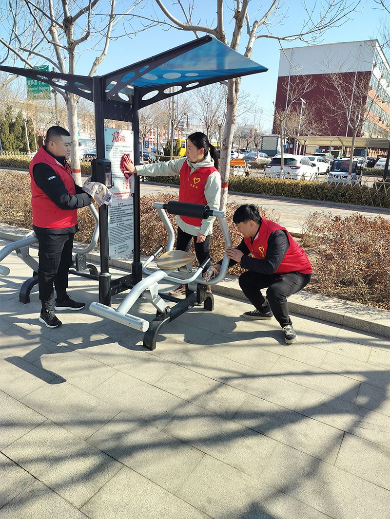 活动中,团员青年发扬不怕苦、不怕累的光荣传统,对广场的健身器械全面擦拭、对花坛、绿化带、人行道的垃圾、烟头全面清理,不放过一个死角。